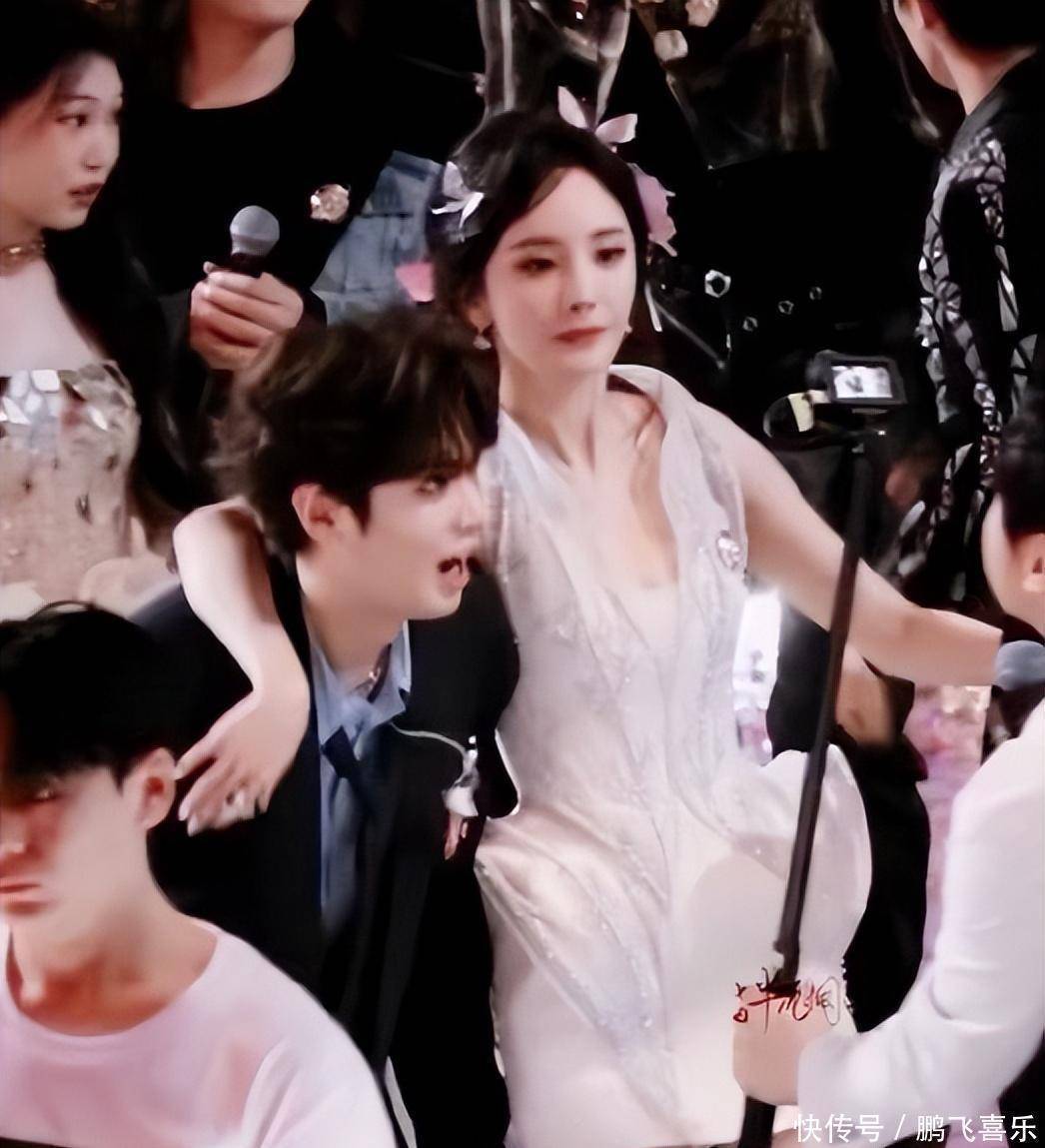 黄明昊也来参加这晚会了,他在台上跟幂姐的互动超有意思,幂姐还直接叫他 “小宝贝”,听着就特亲切。活动结束的时候,幂姐连衣服都没换,主动走到小黄身边,之后俩人就手挽着手走了。一路上有说有笑的,聊得特别开心,小黄还特意放慢脚步跟着幂姐的节奏,这些小细节真的太戳人了。他就算穿了正装,也藏不住那股少年感,俩人动作特别自然,没有一点刻意装熟的样子,全是真情实感。粉丝都调侃说,这场景跟姐姐接弟弟放学一模一样,也能看出来他俩关系是真的好。